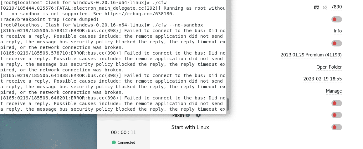 然后在终端中进入该文件夹,执行 ./cfw 即可启动 Clash for Windows 的 GUI 版本。
